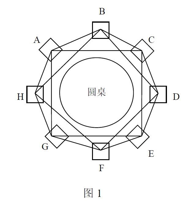 一天,小栋和同学聚会,大家围坐在一张大圆桌周围。小栋看了看,马上想