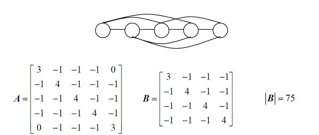 小栋以前没有计算过这类图的生成树个数,但是,他想起了老师讲过的计算