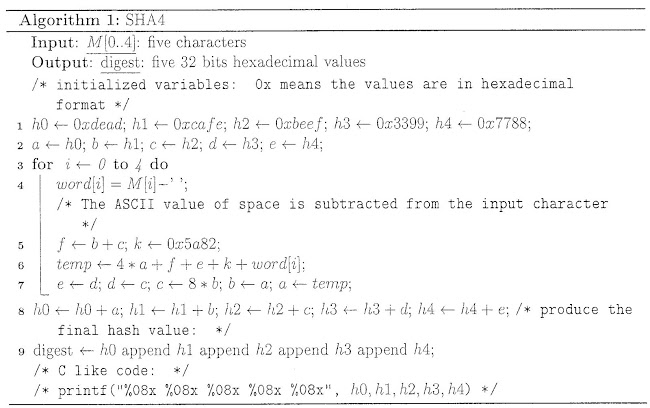 Pseudocode for the SHA4 algorithm is listed in the following: