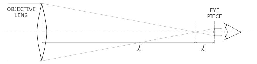 放大率M = 物鏡焦距fo / 目鏡焦距fe