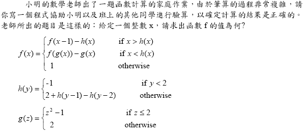 請將計算過後函數f 的值直接輸出至標準輸出(螢幕)。