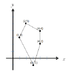 輸入檔中所包含之測詴資料的第一行是在測詴資料裡所列出落在該凸多邊形邊上之點(包含頂點)的個數(N ≤100),接下來則是這N個點的座標資料。每一行有兩個整數表示一個點的 x、y 座標 (x、y的絕對值均小於一百萬),且以一個以上(含一個)的空格分開。在輸入檔中的點座標資料並不一定照順時鐘方向列出。