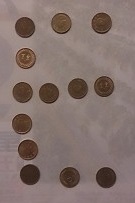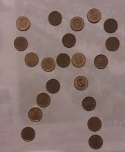 2. 測試資料的硬幣,肉眼清晰可見,如本題附圖。範例輸入是為了符合 ZeroJudge 版面寬度限制,所以才將圖片縮小到看不清楚。