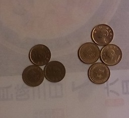 為什麼呢?上次我七歲的姪女剛好來我家玩,我就叫她設計測試資料,順便把硬幣通通分開;今天她沒來我家,所以我就懶的分開了。