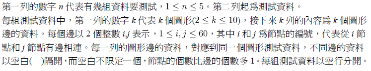 6 2 1-5 2-3 2-4 4-5 4-6 1-3 1-4 1-6 2-6 3-5 4 1-2 1-3 1-4 1-5 5-6 5-7 5-8 2-3 2-4 2-5 2-6 6-1 6-7 6-8 3-4 3-7 3-5 3-6 7-8 7-1 7-2 4-8 4-5 4-6 4-7 8-1 8-2 8-3 6 1-2 1-3 1-4 1-5 1-6 1-7 7-8 7-9 7-10 7-11 7-12 1-8 2-3 2-4 2-5 2-6 2-7 2-8 8-9 8-10 8-11 8-12 1-9 2-9 3-4 3-5 3-6 3-7 3-8 3-9 9-10 9-11 9-12 1-10 2-10 3-10 4-5 4-6 4-7 4-8 4-9 4-10 10-11 10-12 1-11 2-11 3-11 4-11 5-6 5-7 5-8 5-9 5-10 5-11 11-12 1-12 2-12 3-12 4-12 5-12 6-7 6-8 6-9 6-10 6-11 6-12 2 1-5 2-3 2-4 4-5 6-4 1-3 1-6 4-6 2-6 3-5 2 1-5 2-3 2-4 4-5 4-6 2-5 1-3 2-6 4-1 5-6 2 1-5 2-3 2-4 4-5 4-6 2-5 1-3 2-6 4-1 3-6