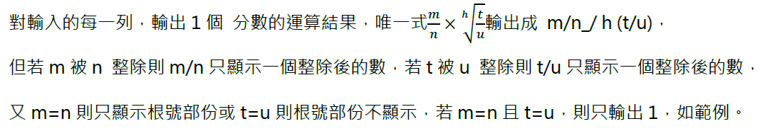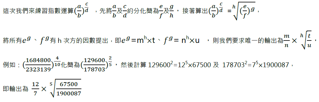 代表兩個分數的指數運算 (a/b) ^ (c/d) ,其中^次方。