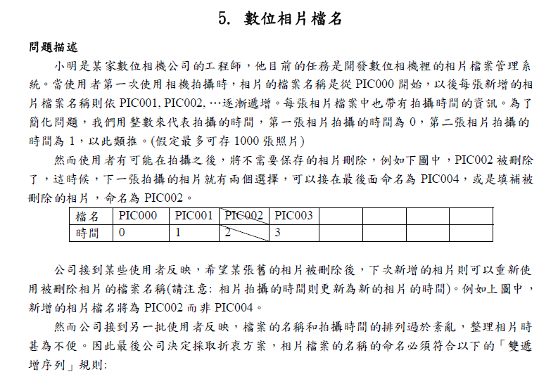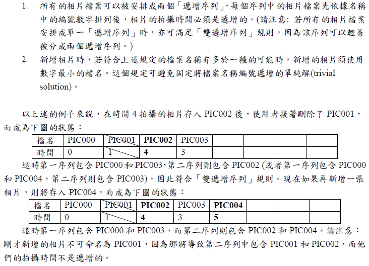 保證不會刪已被刪的 t ,保證每組資料結束時最少還有兩張相片,過程中相片的數量不會超過1000。