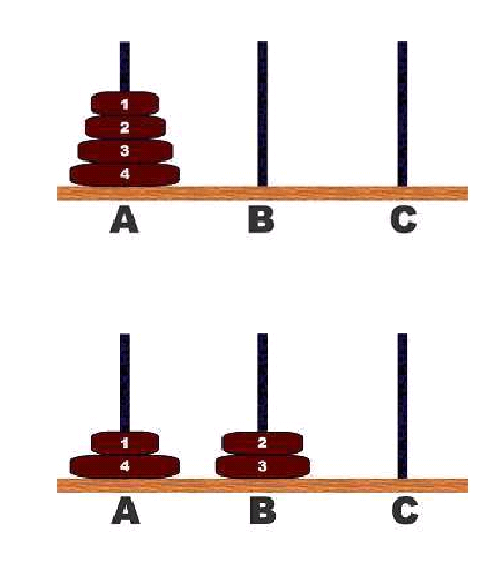 The Tower of Hanoi problem is a popular one in computer science. Briefly speaking, the problem is to transfer all the disks from peg-A to peg-C using peg-B as intermediate one in such a way that at no stage a larger disk is above a smaller disk. The minimum number of moves is required for this task.