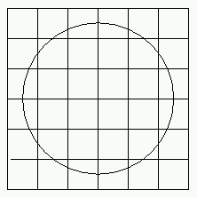 In the case n = 3, 20 cells contain segments of the circle. There are 12 cells completely contained in the circle. In the case n = 4, 28 cells contain segments of the circle. There are 24 cells completely contained in the circle.