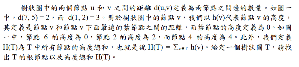 第一行有一個正整數n代表樹狀圖的節點個數,節點的編號為1到n。