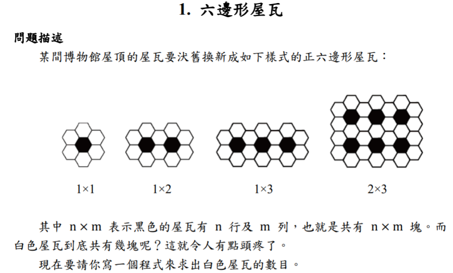 輸出資料為一個正整數,表示白色屋瓦有幾塊。