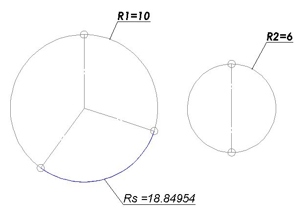 輸出結果,在圓1 中可放置 3 個點,圓2 中可放置 2 個點 (各點之間最短環狀距離約為 18.85,如下圖所示)