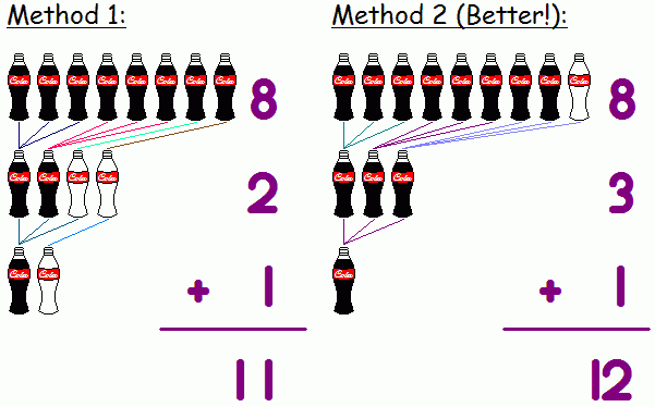 可是其實你有一個更好的方法! 在第二種方法裡面, 你可以先和你的朋友(或者是店員??)借一個空罐子, 然後你就可以喝到 8 + 3 + 1 = 12 瓶可樂! 當然, 你最後要把 1 瓶空罐子還給你的朋友.
