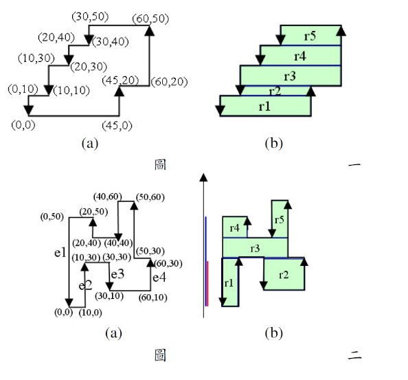 向行走,並且記錄每條線的方向,如圖一(a)與圖二(a),他的原始想法是先將兩