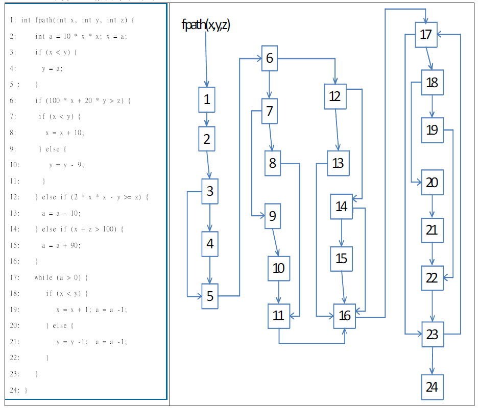 一個程式的執行路徑關係,可以描繪成一個流程圖形(flow graph),例如左