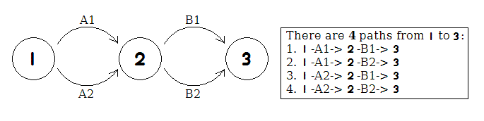 這樣的計算有多種應用。例如,上面的例子,其實就是下面的路徑圖: