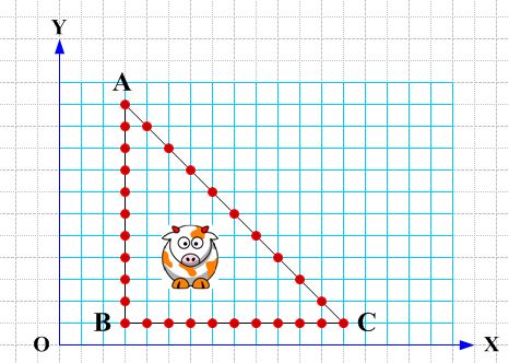 王老先生有塊三角形的土地(ABC),希望能放牧一些牛羊,王老先生要在土地的周圍佈上木樁並拉起鐵絲圍欄,