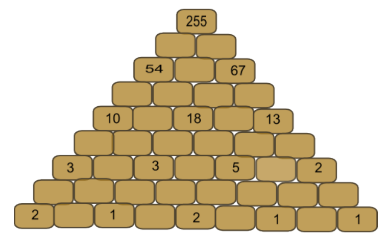 考慮到一個簡單的規則:磚塊的數字是通過將其下面的兩個磚塊的數字相加而獲得的。