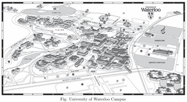 您已獲得一張校園地圖,其中顯示了所有建築物和現有通信電纜的位置。 您不得更改現有電纜。 確定在哪里安裝新的通信電纜,以便所有建築物都連接起來。 滑鐵盧大學希望您盡量減少使用的新電纜的數量。