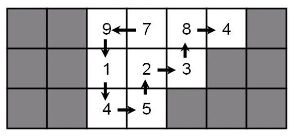 給你一個含有障礙物及1~9數字的方陣,你可以從任何一個不為障礙物的格子開始走,最後停在某格子。每一步你可以走到上、下、左、右四個鄰居格子其中之一。但是你不可以走到有障礙物的格子,你也不可以走到一個格子超過1次。當你結束時,根據你剛才走過的格子的順序,你會得到一個數字。例如在下圖中,你可以得到9784,4832145等等。最大你可以得到791452384。