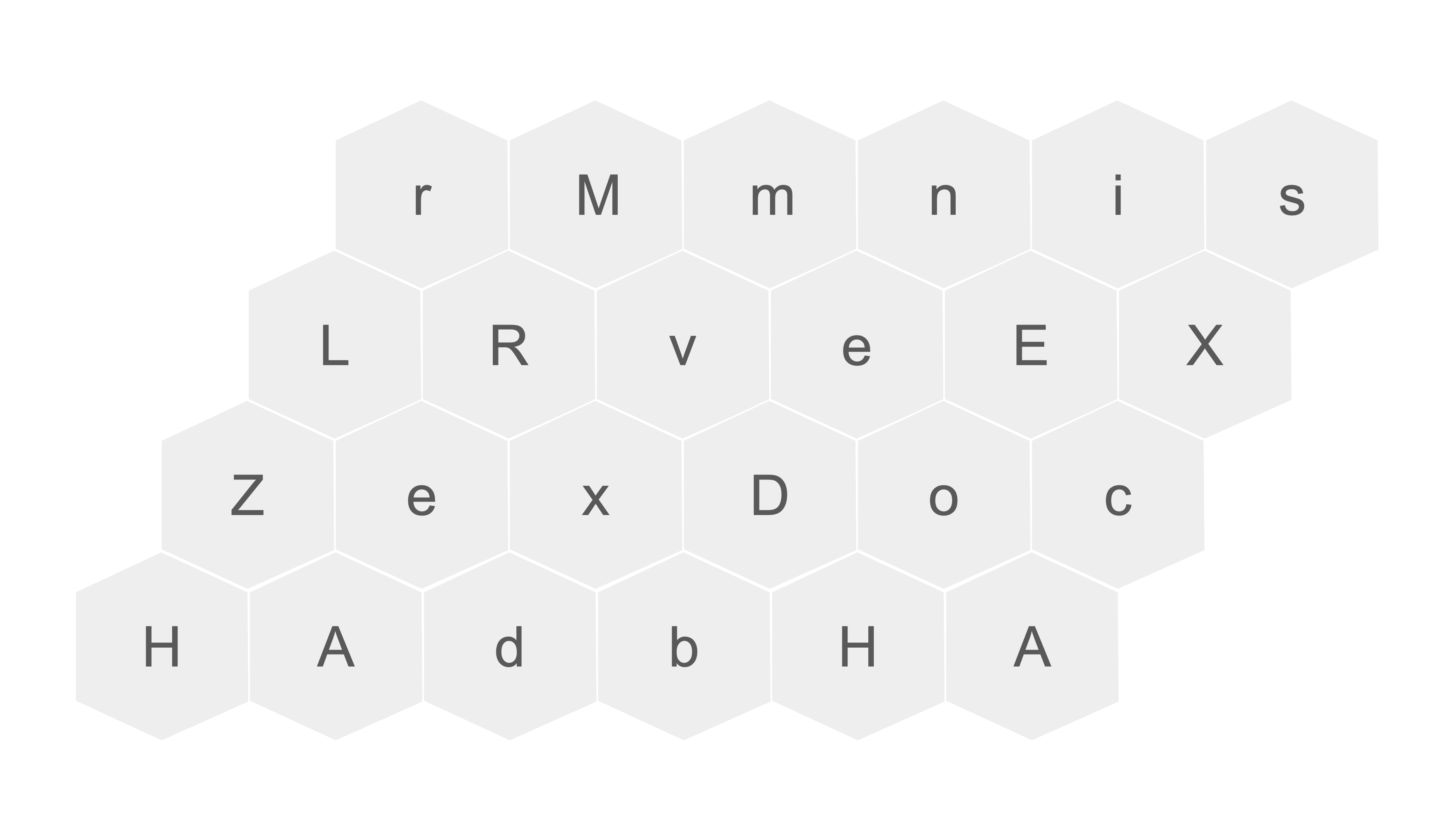 蜜蜂 Bob 在一個大小是 $m \times n$ 的蜂巢 (見範例說明圖示),並且每個蜂巢格上會有一個代表字母(大小或小寫英文字母)。