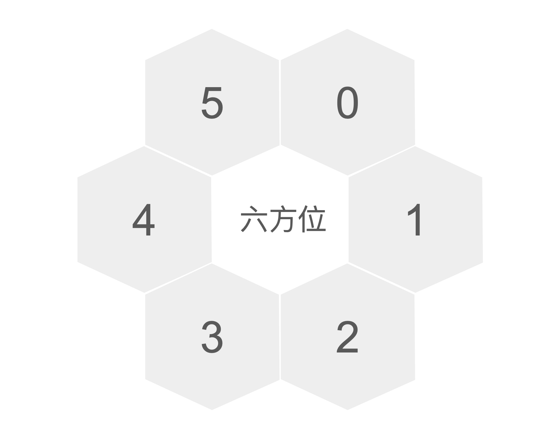 Bob 一開始在蜂巢左下角,行走方向定義如圖:0 是往右上; 1 是往右邊; 2 是往右下; 3 是往左下; 4 是往左邊; 5 是往左上。