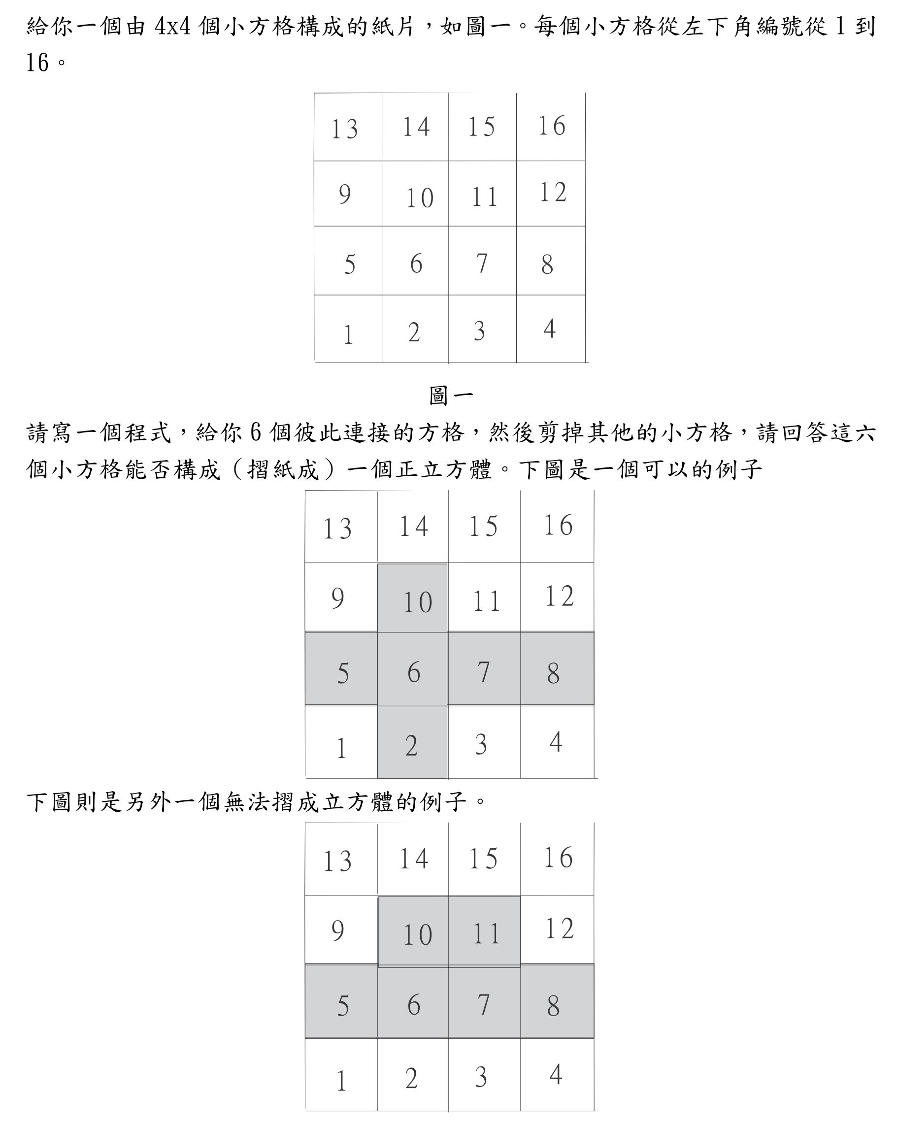 針對每一測資,判斷是否能摺成立方體,如果可以則輸出 yes,否則輸出 no。