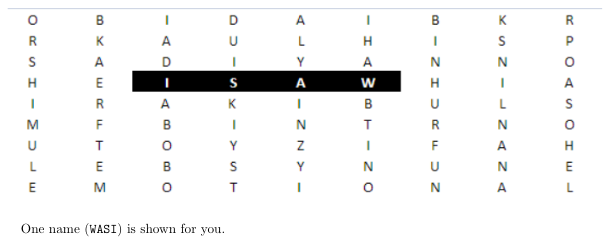 你將得到一個 9 × 9 的網格(在下一頁)。出題者的名字隱藏在網格中。名字如下(無特定順序):