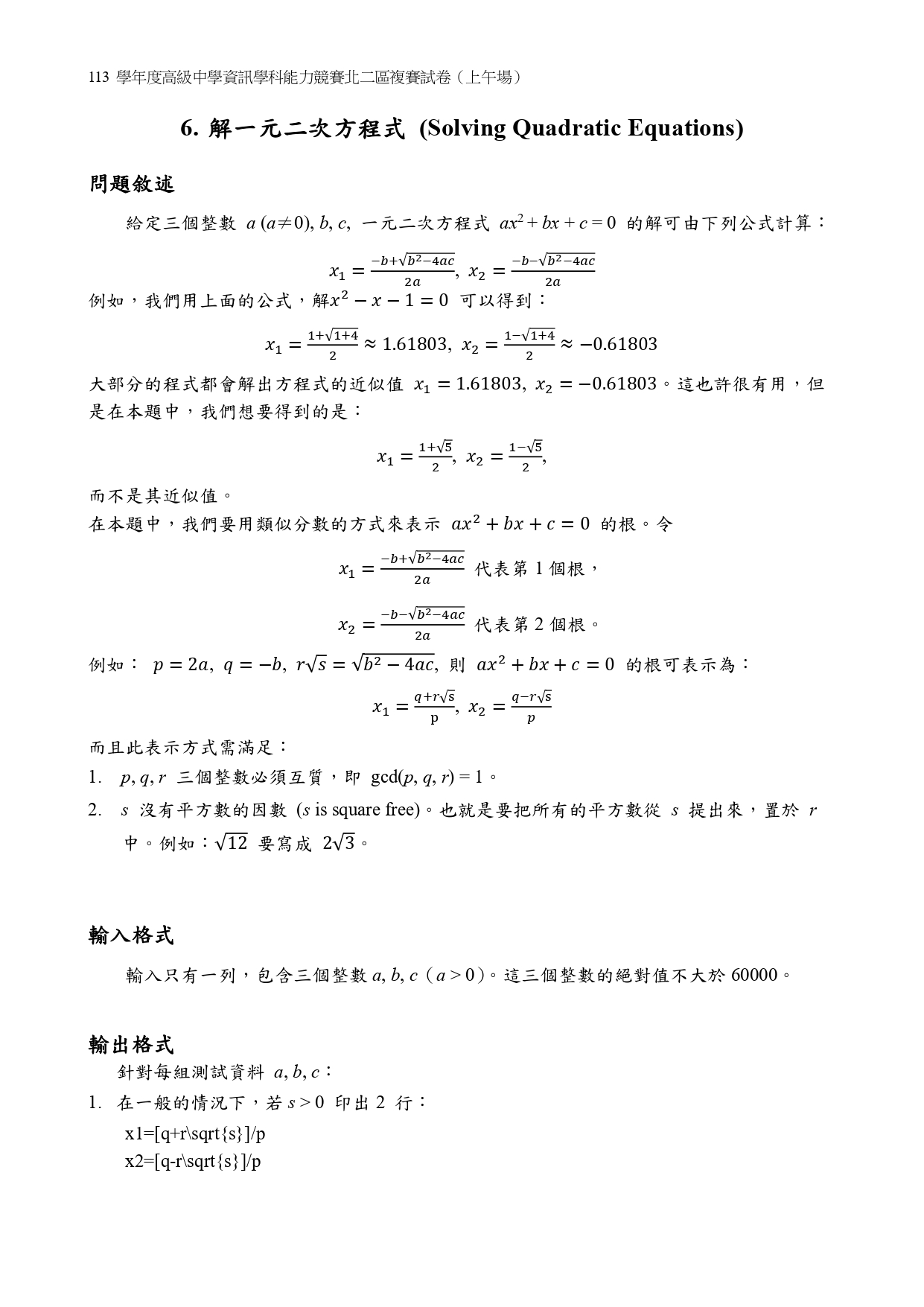 113北二6a.解一元二次方程式