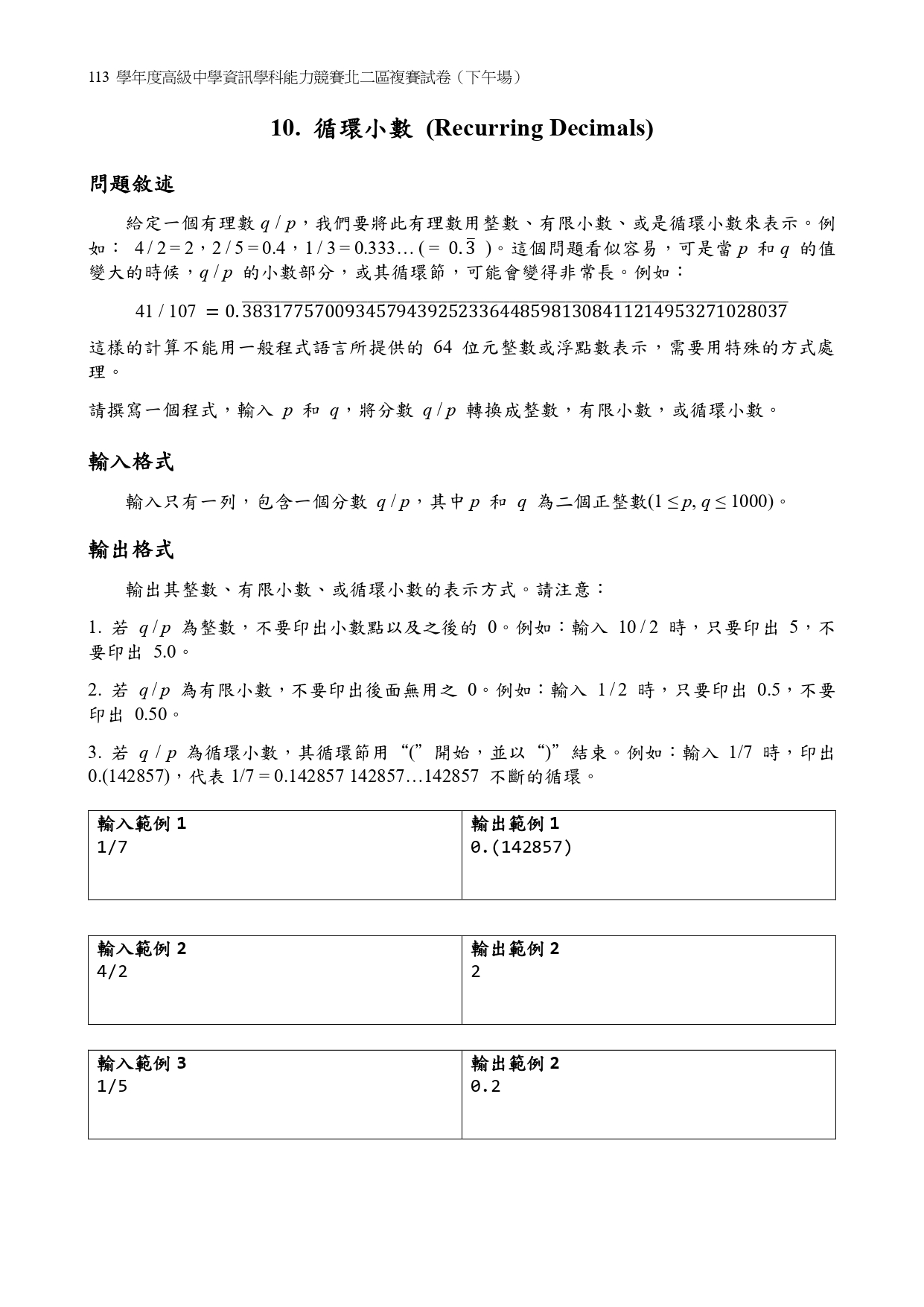 113 北二區 桃竹苗 資訊學科能力複賽 [管理者: mushroom.cs9 ... (mushroom) ]