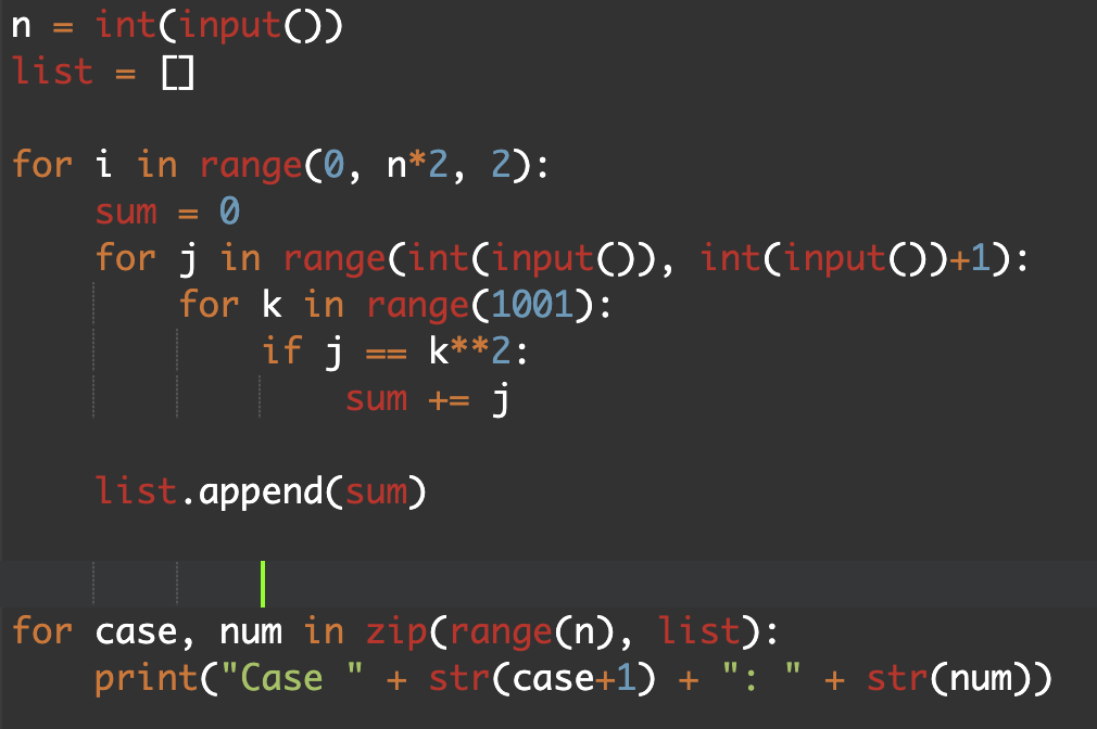 這題解法很多,但建議不要把平方數一一列出,試著用迴圈去解。(自以為寫得很短😏🫢)