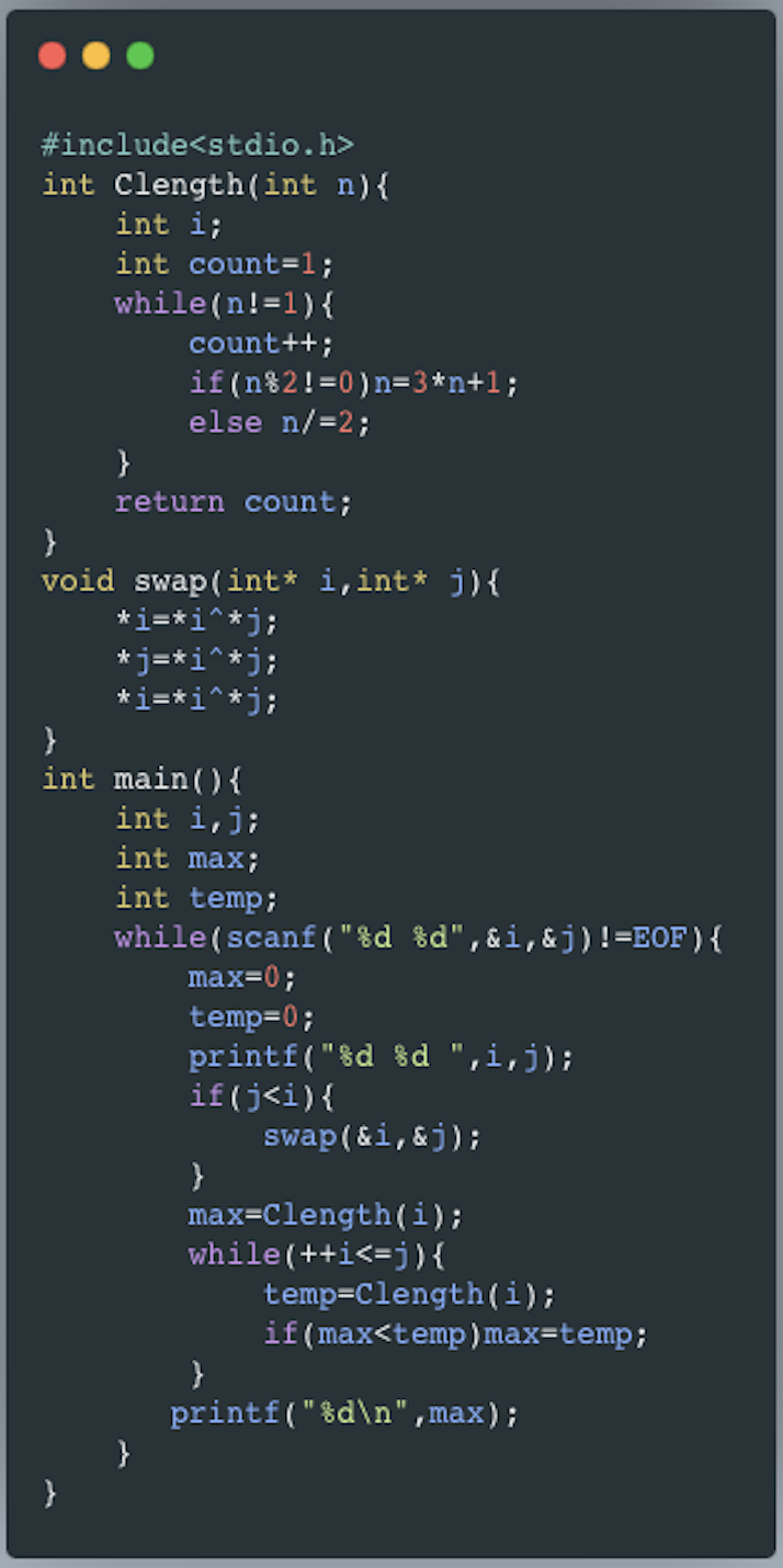 00100 - The 3n + 1 problem