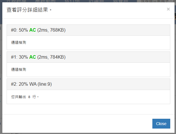 搞不懂是什麼問題,導致輸出結果比系統要求的少一行?