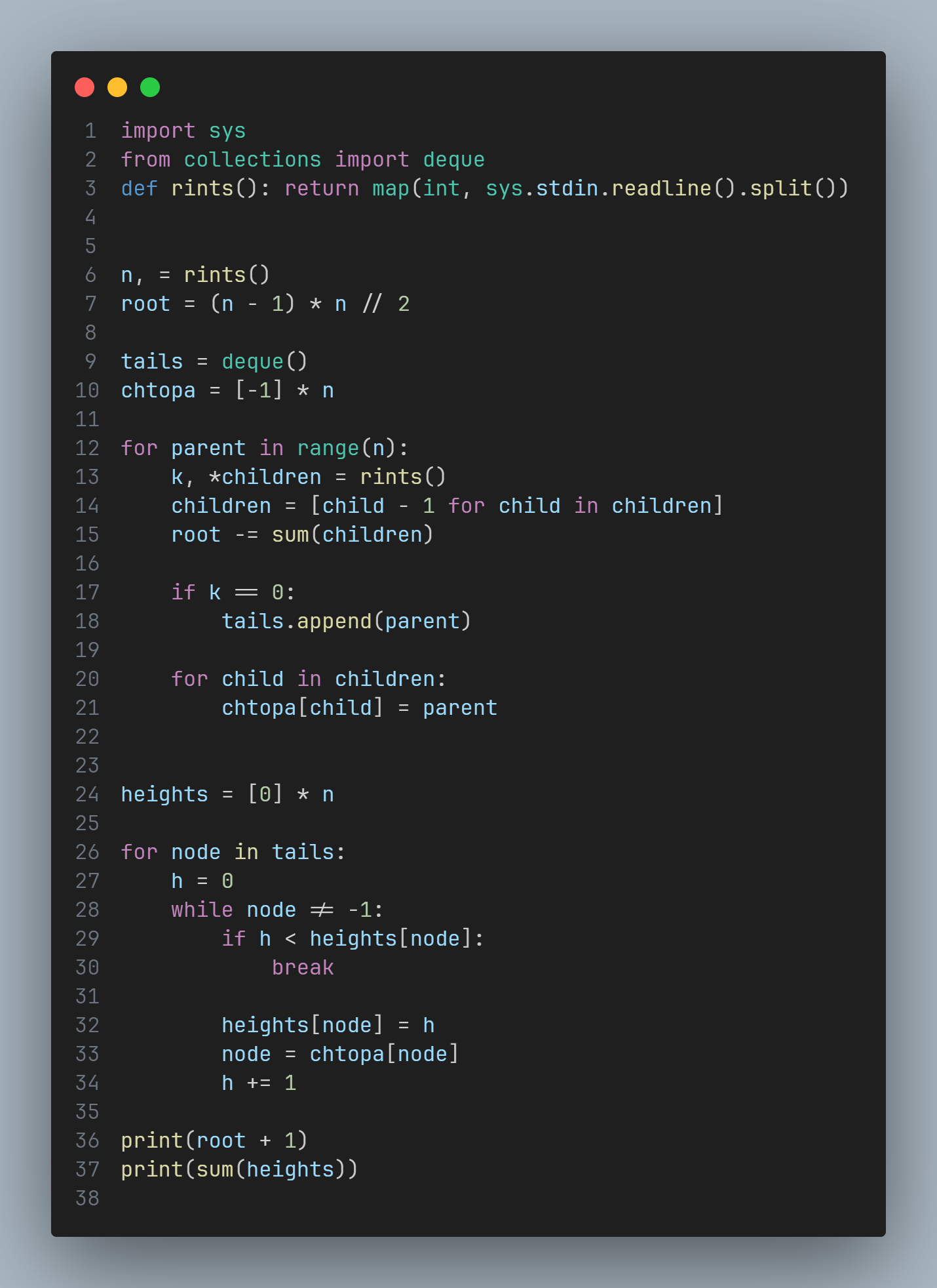 歷遍所有末節點(紀錄子節點高度➡子節點得父節點➡子節點=父節點,重複直到根節點為止)