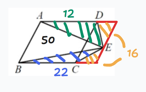 設 b = ABCD 與紅色輔助線形成的大平行四邊形面積